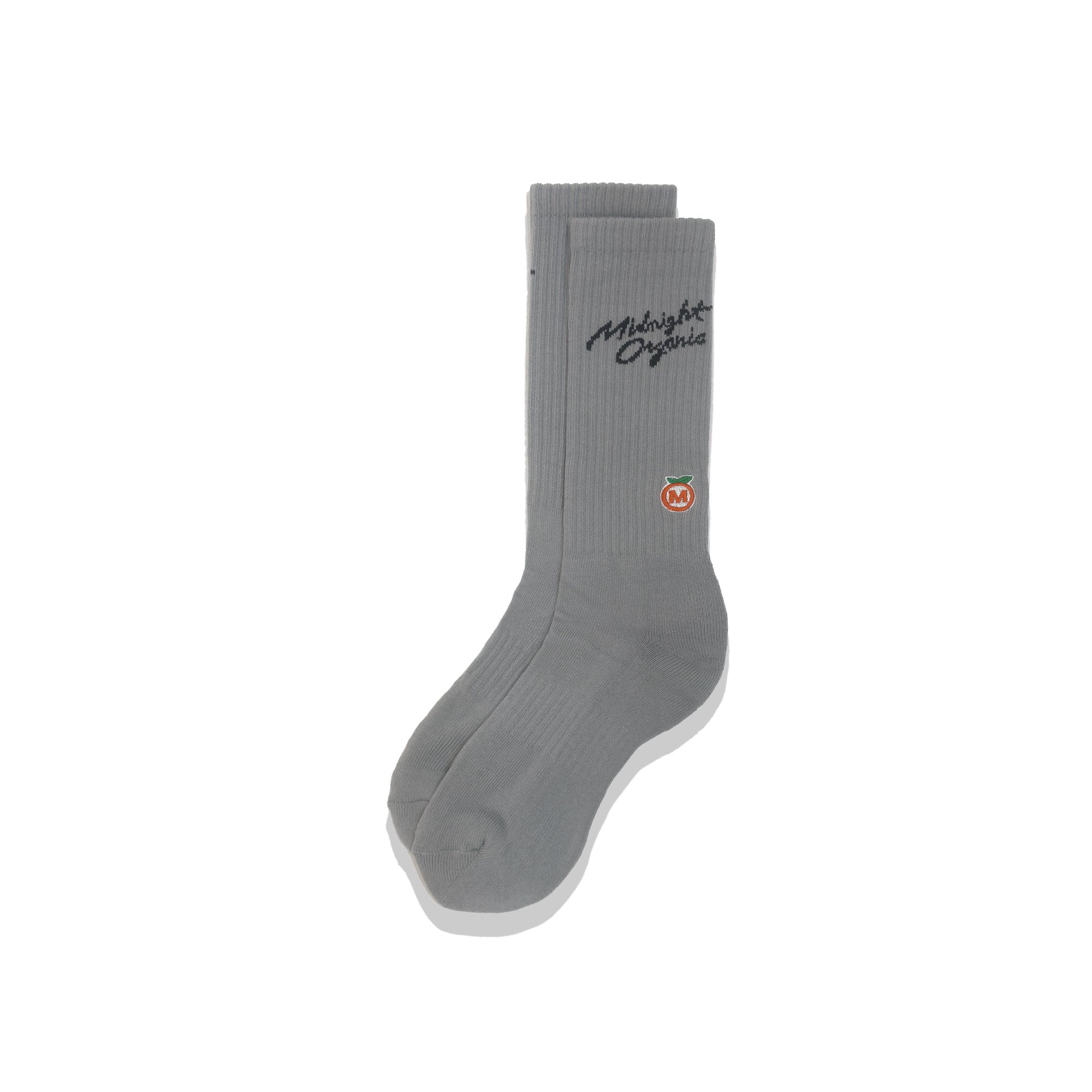 • Crew length socks with Midnight Organic Signature logo jacquard knit below top.